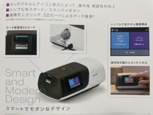 写真は、当院のCPAP装置の本体部分です。睡眠中、吸う息も吐く息も常に同じ圧力がかかるよう設定されており、もっともシンプルで歴史のある治療法です。適切な圧力設定さえ行えば上気道の閉塞を効果的に防げるため、閉塞性睡眠時無呼吸の第一選択として広く用いられています。