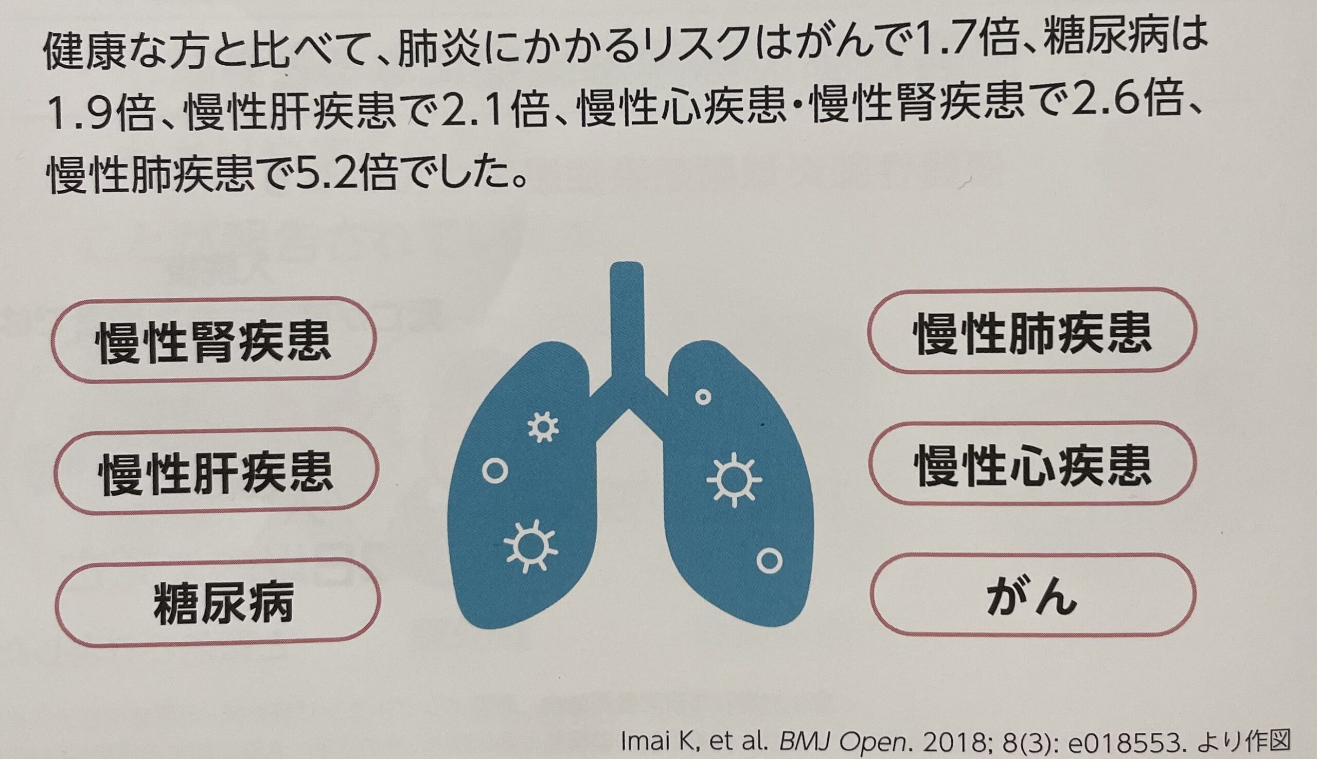 基礎疾患がある方は、肺炎の罹患リスクが高くなることが下の写真で示されています。