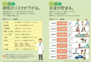 医学的には、禁煙を短期的、あるいは長期的に続けると体の機能の改善や病気になるリスクが低下し、さまざまな効用が期待できることが明らかになっています。さらに、禁煙するとお金が貯まります。